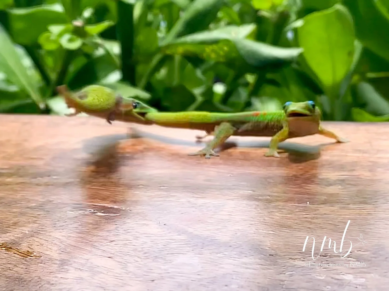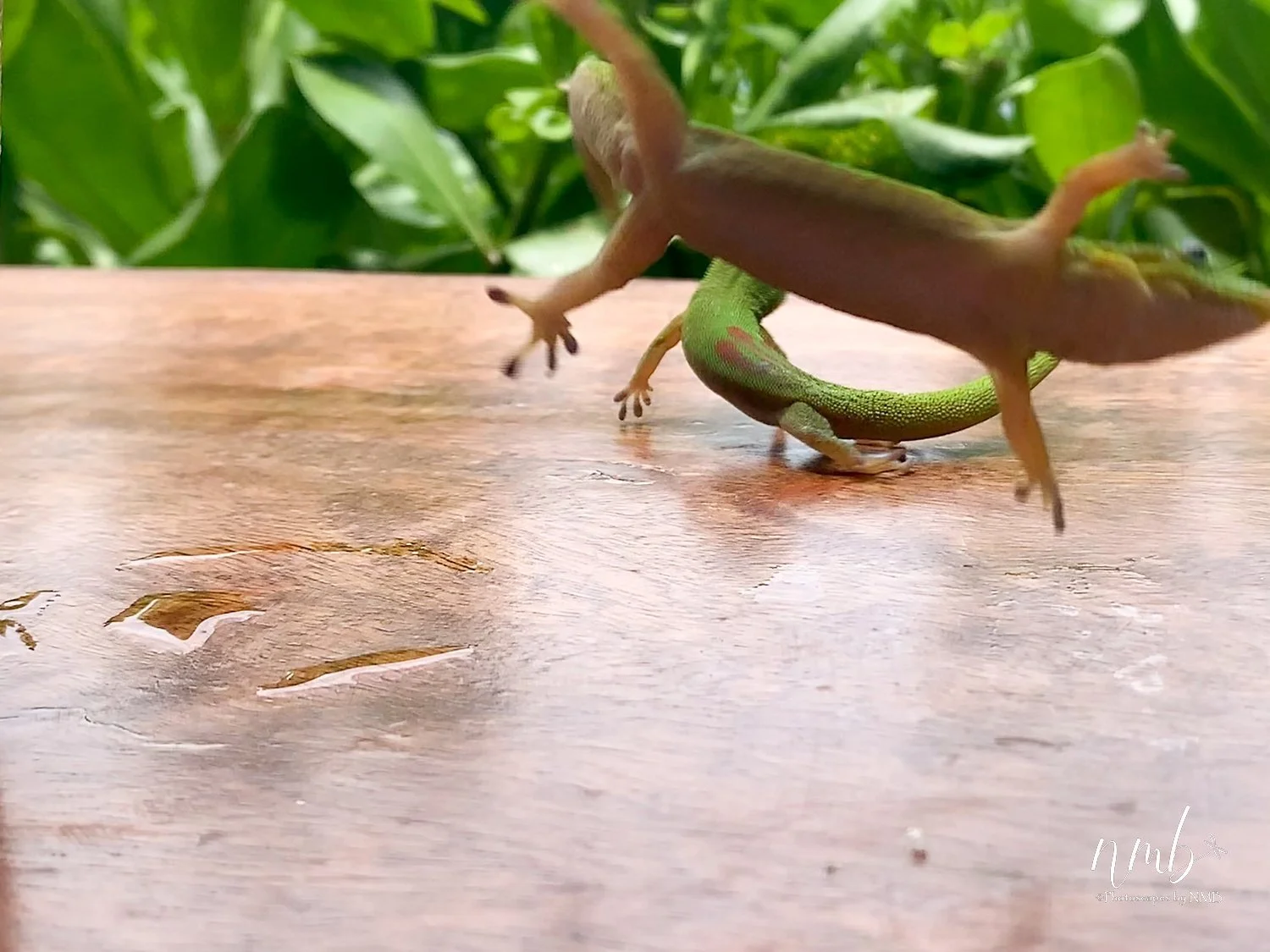 I love the Big island of Hawaii and these Geckos can entertain me for hours. Recently I was there with my sister and we had lunch on Alii Dr., we sat at the counter facing the ocean as this guy along with his buddies came over to grab a drink of water and to wrestle. The other 2 images are of the fight one grabbed the other by the tail and Threw him right at me I laughed so hard that everyone was looking at me.